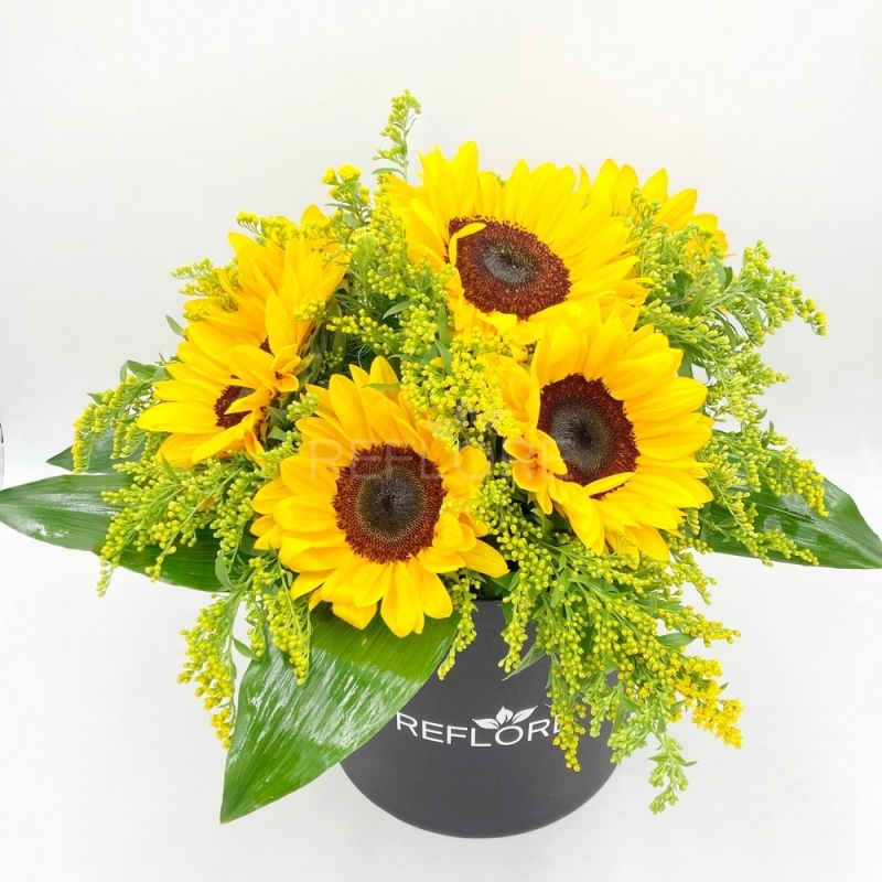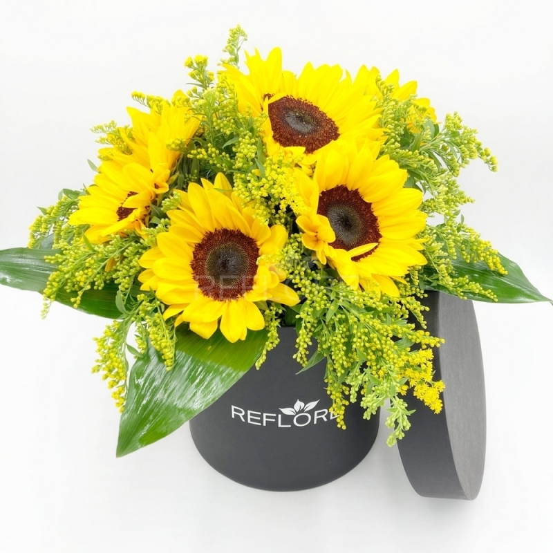 Una spledida box cilindrica ricca di girasoli, una messaggio di energia e luce per questo omaggio floreale. Un fiore duraturo e simbolo di felicità e perseveranza ma anche fedeltà in amore. Regalare fiori è sempre un gesto d'amore.