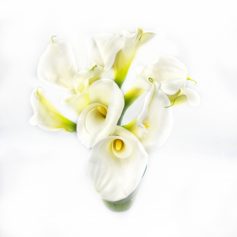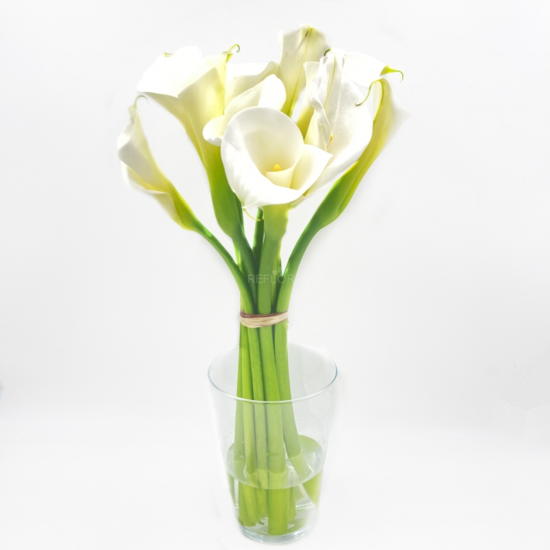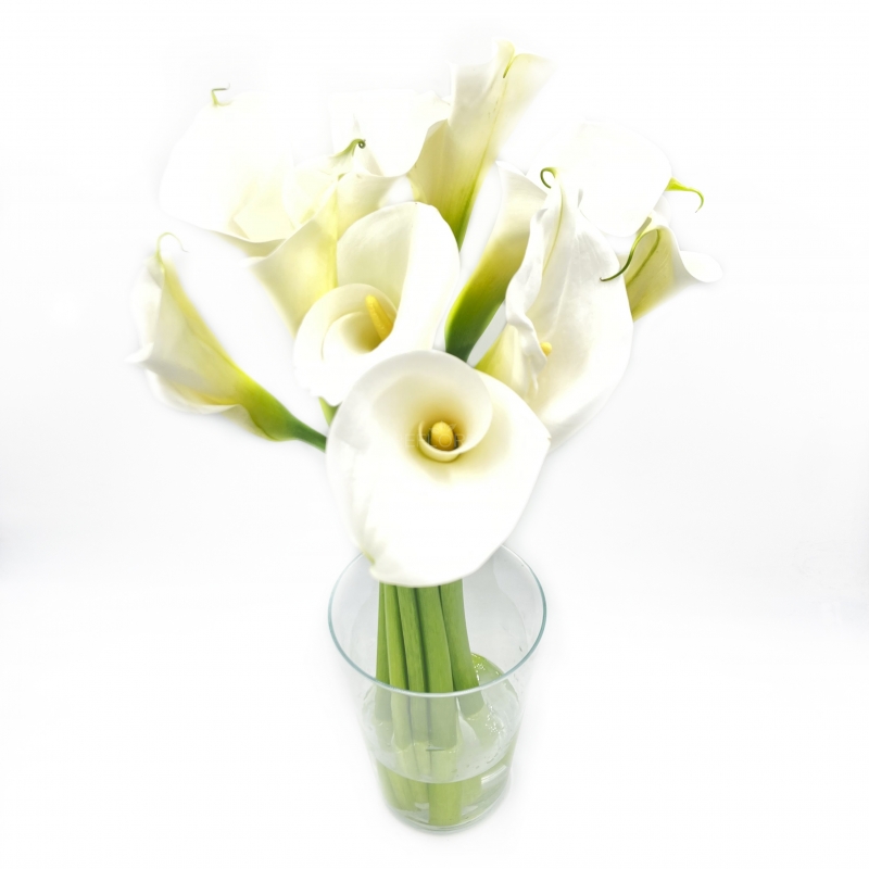 Elegante e minimale bouquet di candide e luminose calle bianche a gambo medio che emana tutto il suo fascino nella sua semplicità.