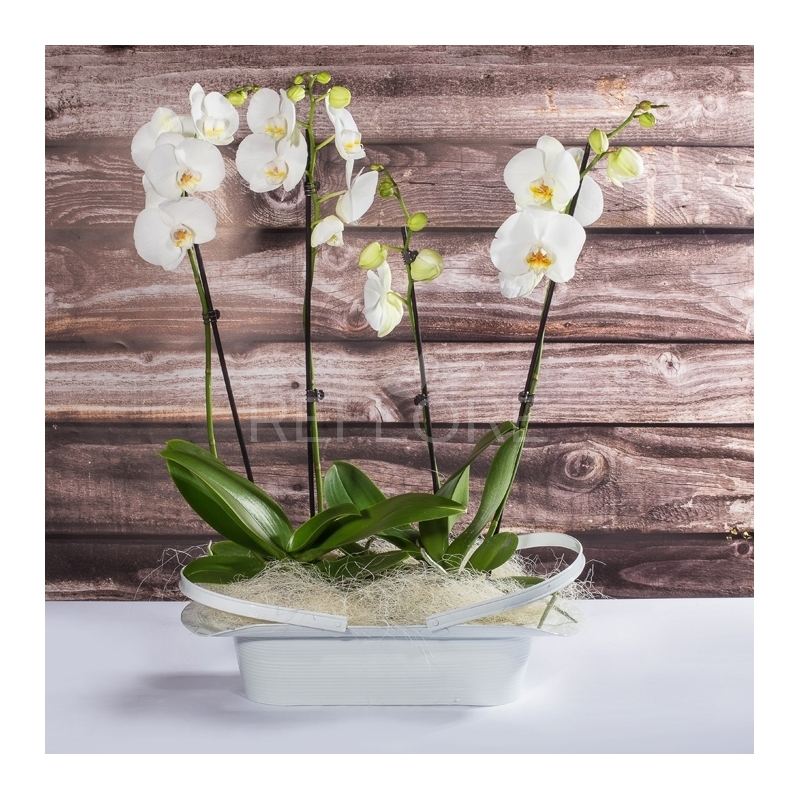 Le orchidee possono essere confezionate in vaso di ceramica, metallo o cesto in vimini.