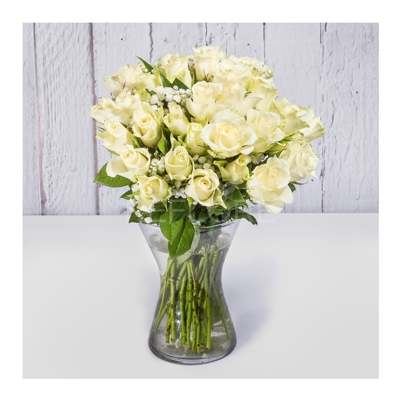Splendido mazzo composto da 25/30 rose bianche.